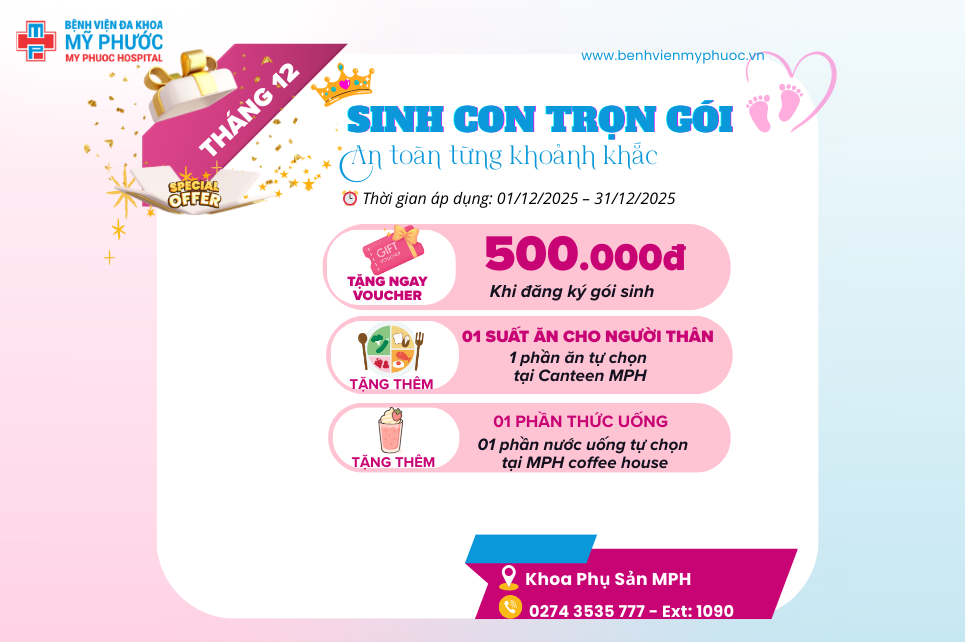 Áp dụng khi đăng ký bất kỳ gói sinh nào tại bệnh viện. Đây là ưu đãi thiết thực, giúp gia đình tiết kiệm chi phí khi chuẩn bị chào đón thành viên mới.